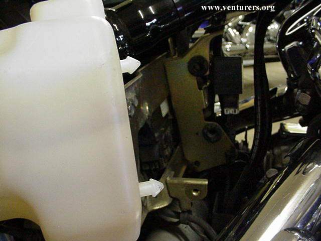 ![]() My next step was to remove the coolant reservoir tank under the seat. I removed the cap and breather hose off the tank