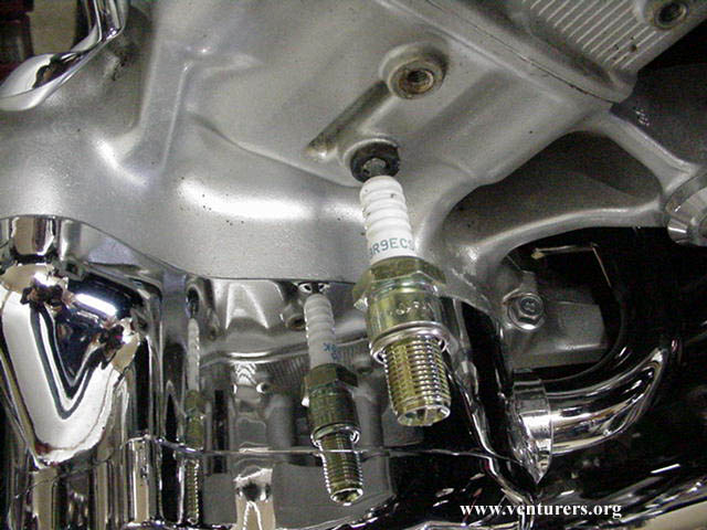 ![]() After the covers are off the cylinder drain plugs can be removed by threading a spark plug into them and gently pulling towards you.